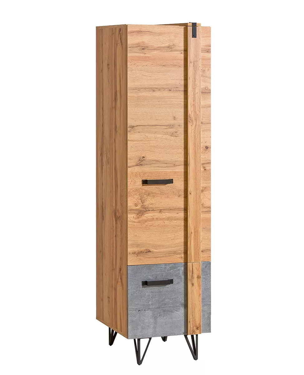 Policová šatní skříň 46 cm CONOVER - dub wotan / beton / černá