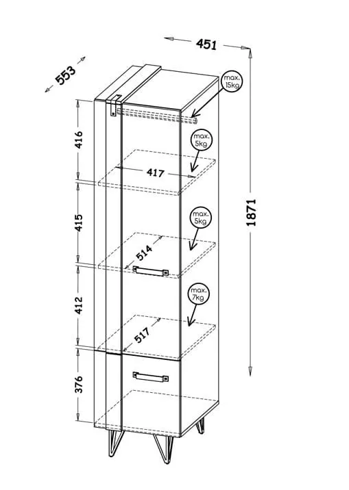 Policová šatní skříň 46 cm CONOVER nabídne dostatek prostoru k uložení veškerého oblečení a doplňků. Nadčasová kombinace dubového dekoru s betonovými akcenty a kovovou základnou dokonale zapadne do každého loftového interiéru.