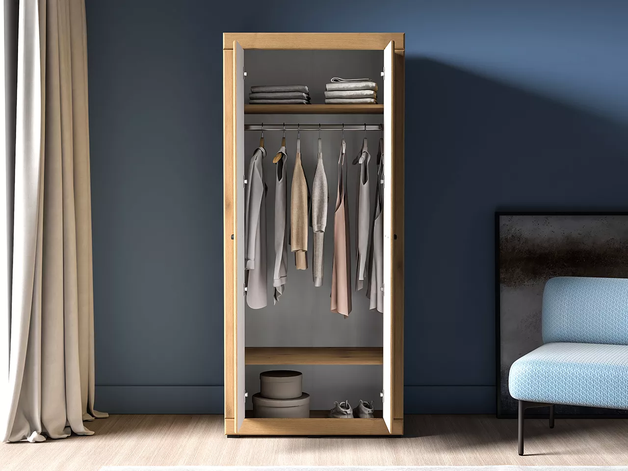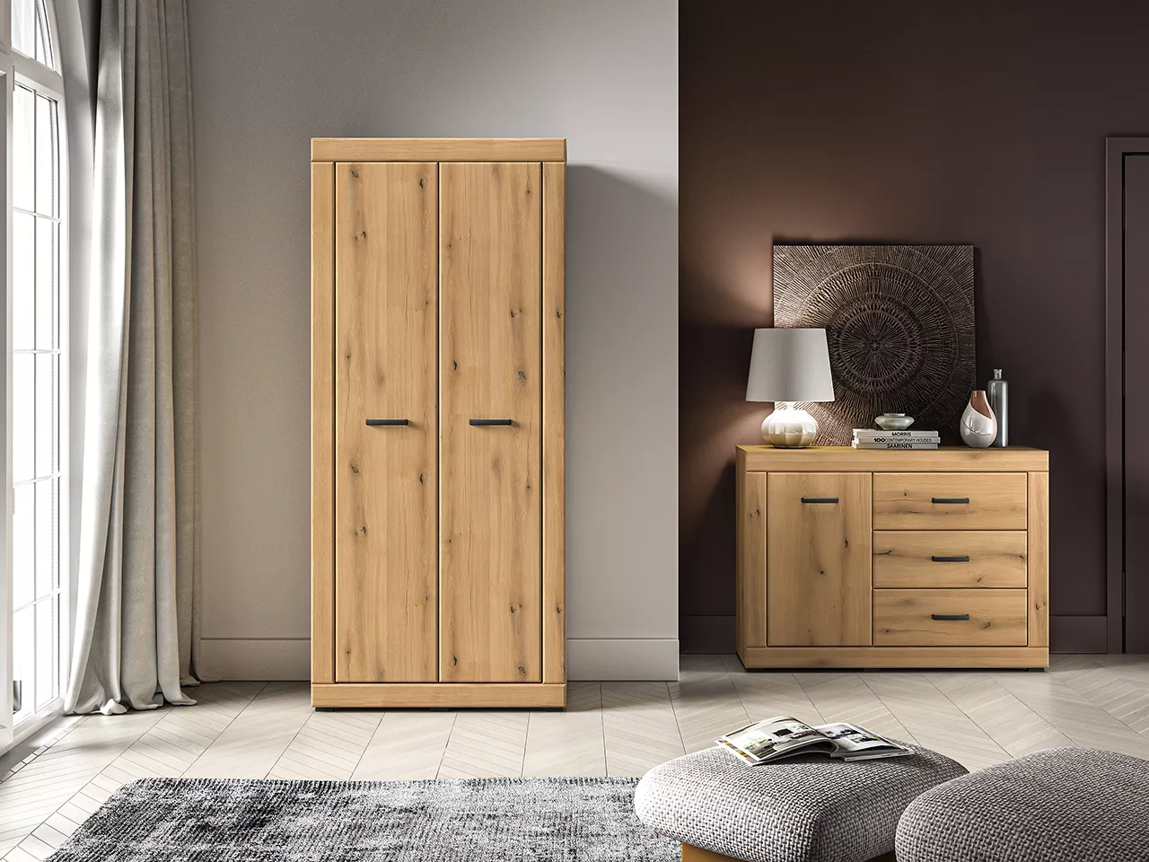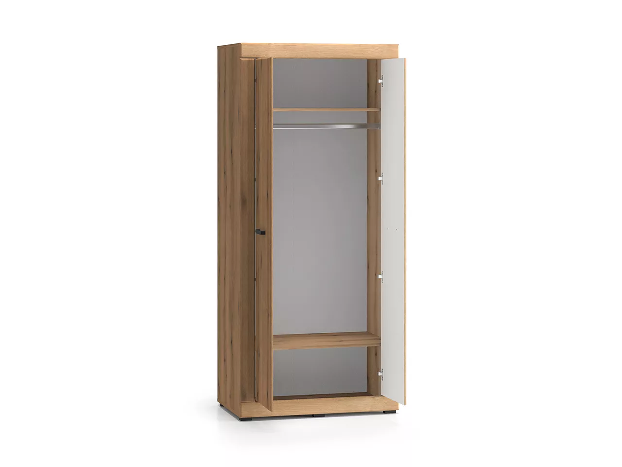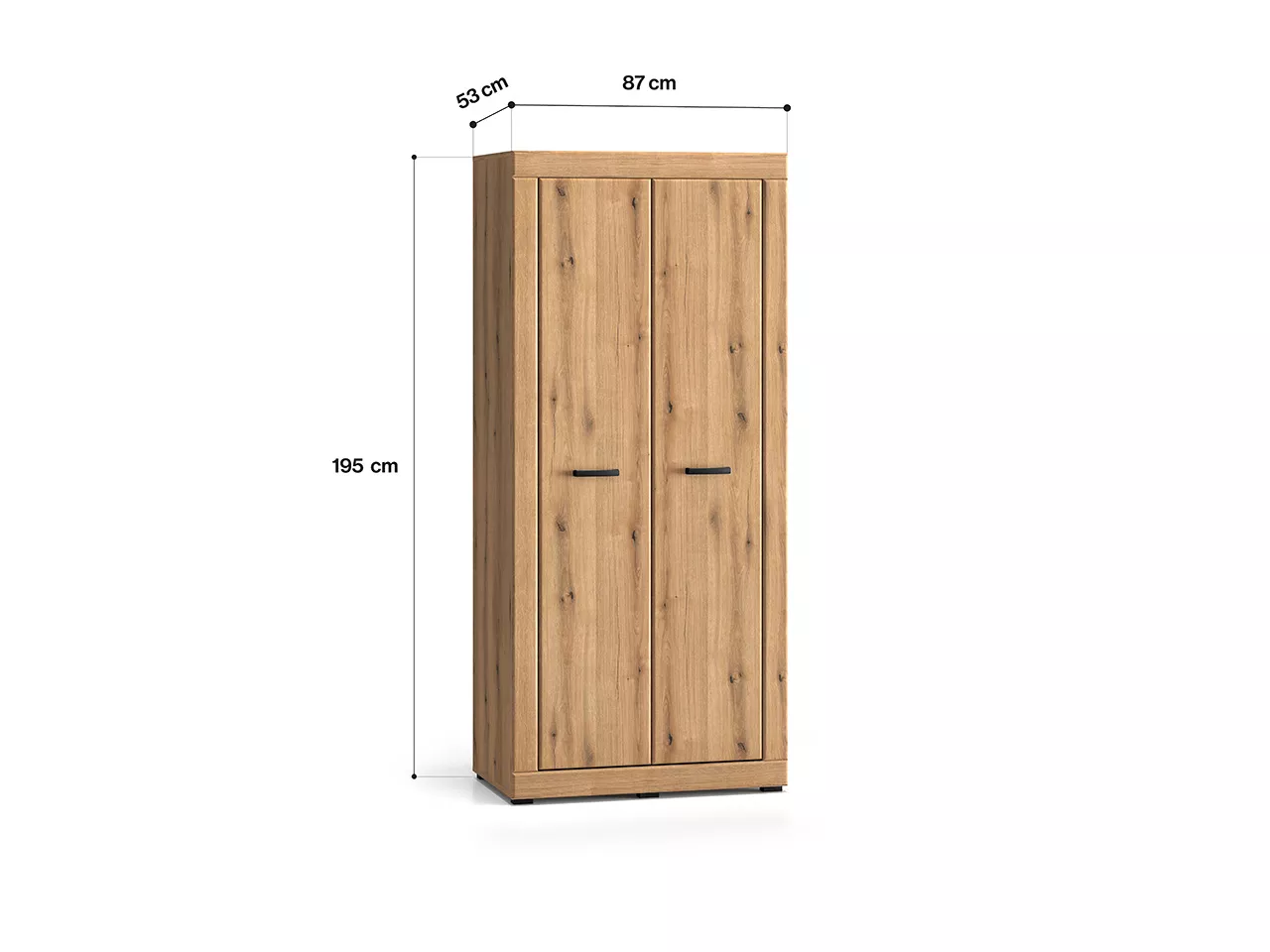 Šatní skříň 87 cm ADELLA díky svému dekoru dubu skvěle zapadne do každého stylu interiéru vaší ložnice nebo předsíně. Je vybavena 2 policemi a šatní tyčí pro uložení a zavěšení všeho potřebného. Systém tichého dovírání zpříjemní každodenní používání.
