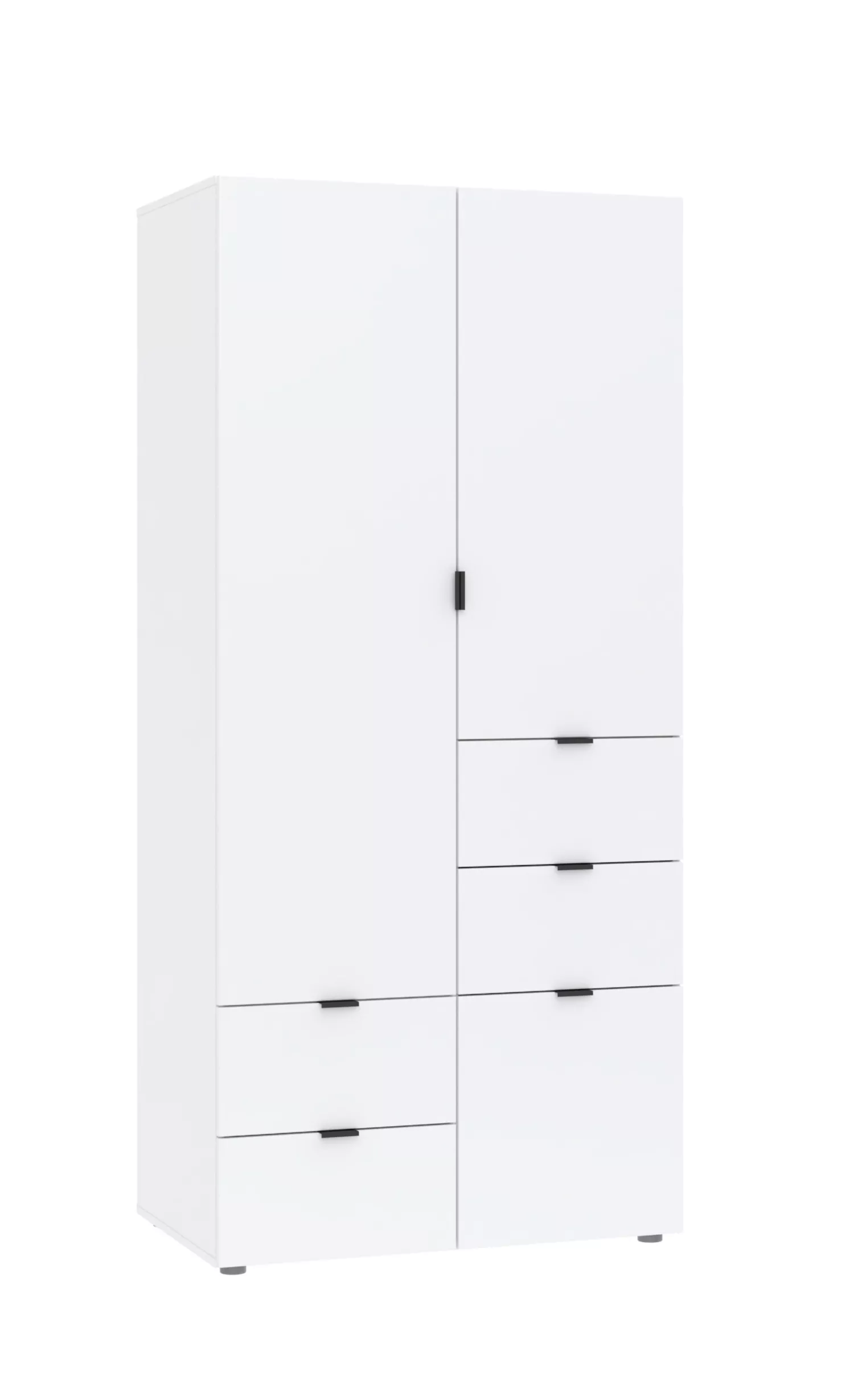 Kombinovaná šatní skříň 90 cm ZARA skvěle zapadne do každé moderní ložnice. Nabízí spoustu prostoru pro uložení veškerého oblečení. Disponuje 4 šuplíky a 2 šatními tyčemi.