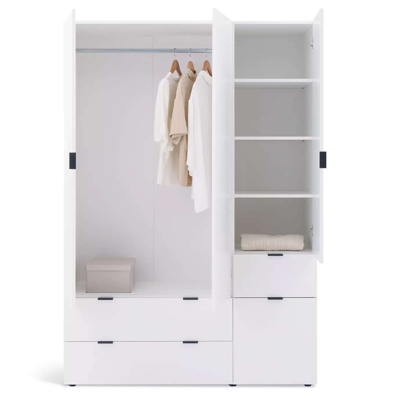 Šatní skříň 135 cm ZARA skvěle zapadne do každé moderní ložnice. Nabízí spoustu prostoru pro uložení veškerého oblečení. Disponuje 3 šuplíky, 3 policemi a šatní tyčí.
