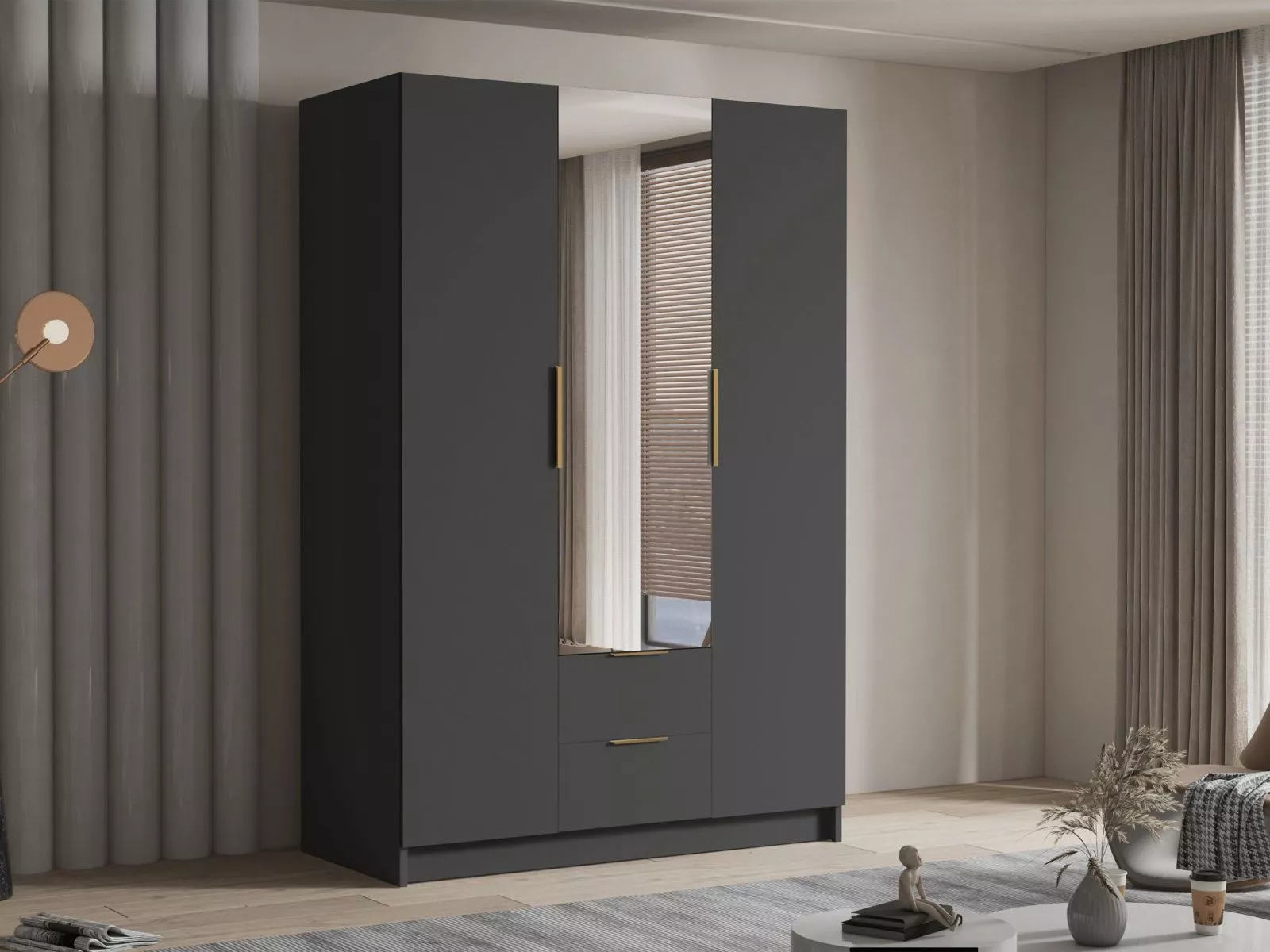 Vysoká šatní skříň 150 cm se zrcadlem MARILA - černá / zlatá