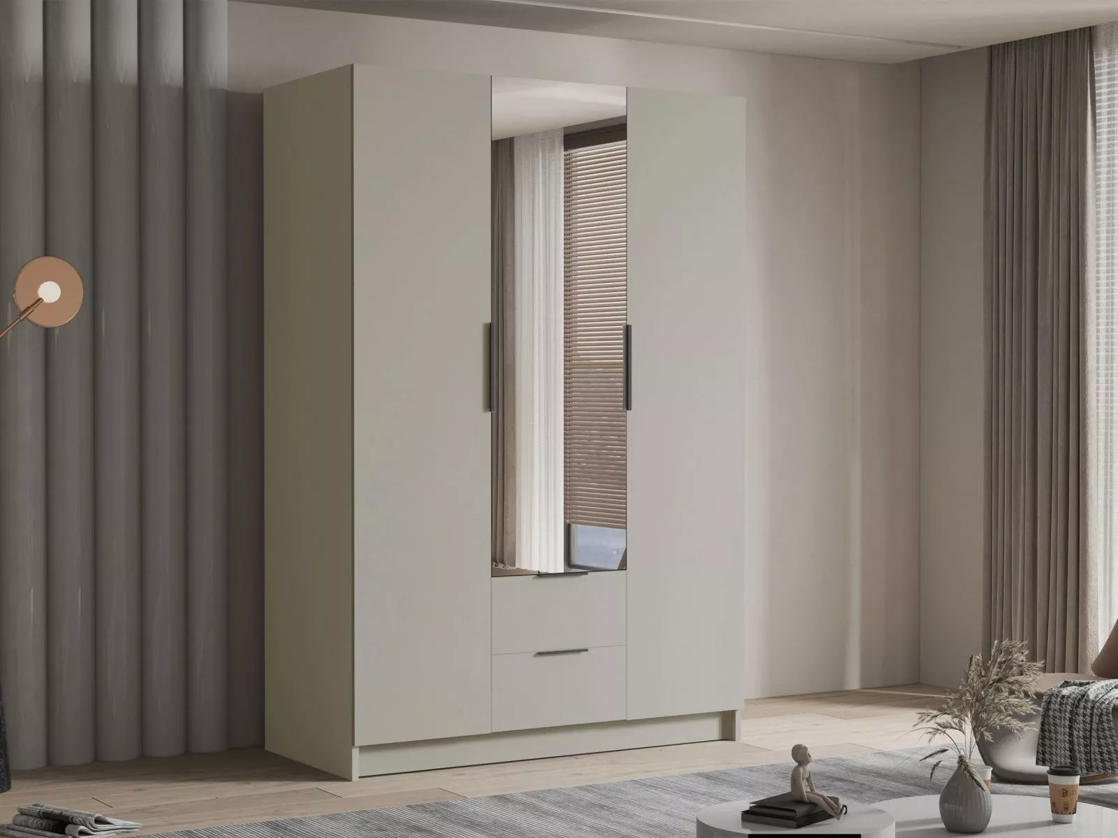 Vysoká šatní skříň 150 cm se zrcadlem MARILA - kašmír / černá