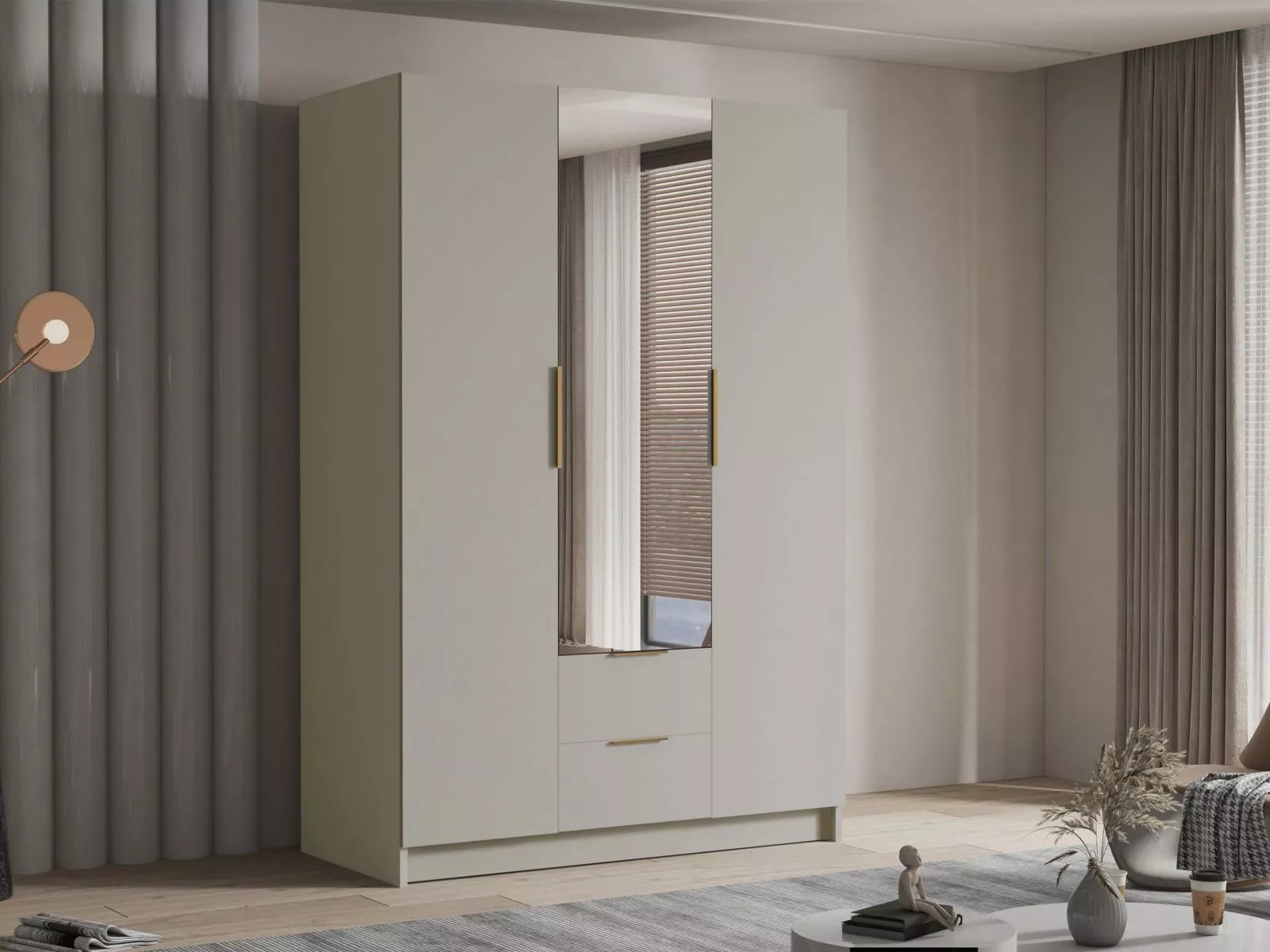 Vysoká šatní skříň 150 cm se zrcadlem MARILA - kašmír / zlatá