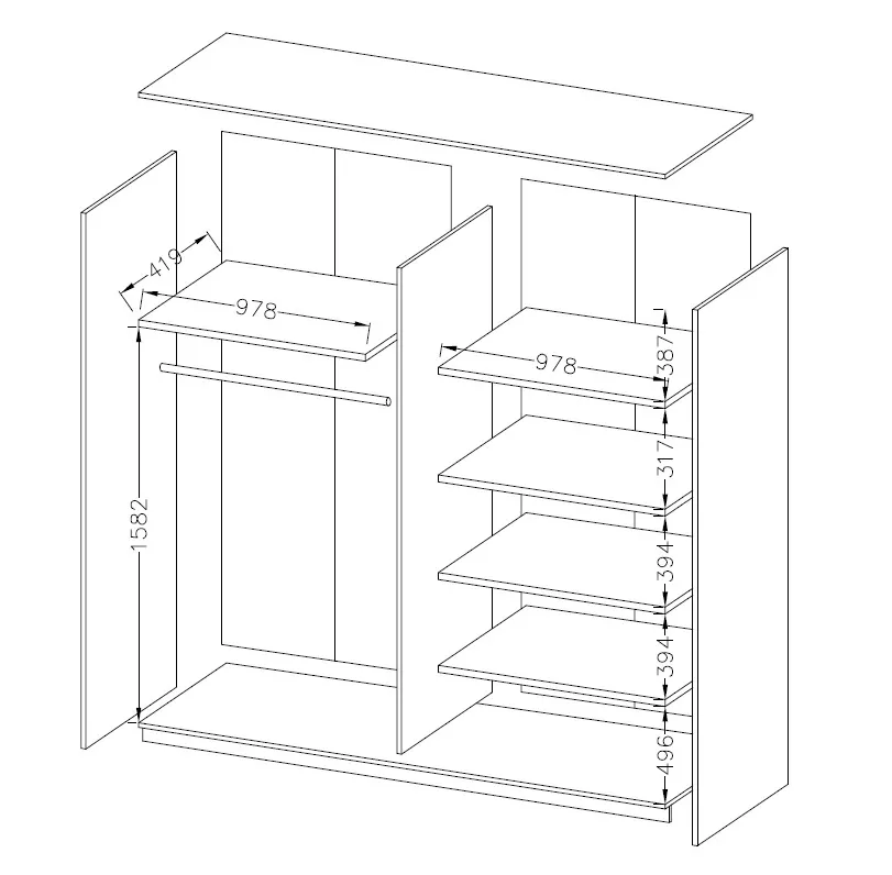Skříň Sára zaujme svým moderním charakterem. Lesklá černá přední část tvoří originální atmosféru dané kompozice. Model je vybavený policemi a dvěma šatními tyčemi, které umožní třídit větší množství oblečení. Nábytek ve spojení s ostatními prvky kolekce tvoří komplet, který okouzlí dokonce i nejnáročnější zákazníky. Solidní provedení na základě nábytkové desky odolné vůči poškození, zaručuje dlouholetý komfort používání.