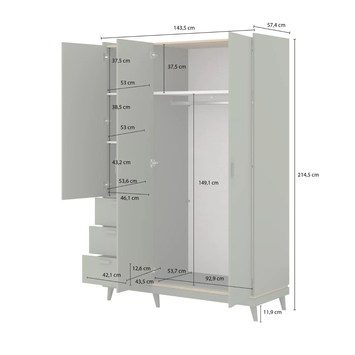 Třídveřová skříň se šuplíky 144 cm ARWEN nabízí dostatek místa k uložení a zavěšení veškerého oblečení nebo doplňků. Skříň disponuje šatní tyčí, 3 šuplíky a 3 prostornými policemi. Skříň je vyrobená z odolných materiálů, takže vám bude sloužit mnoho let.