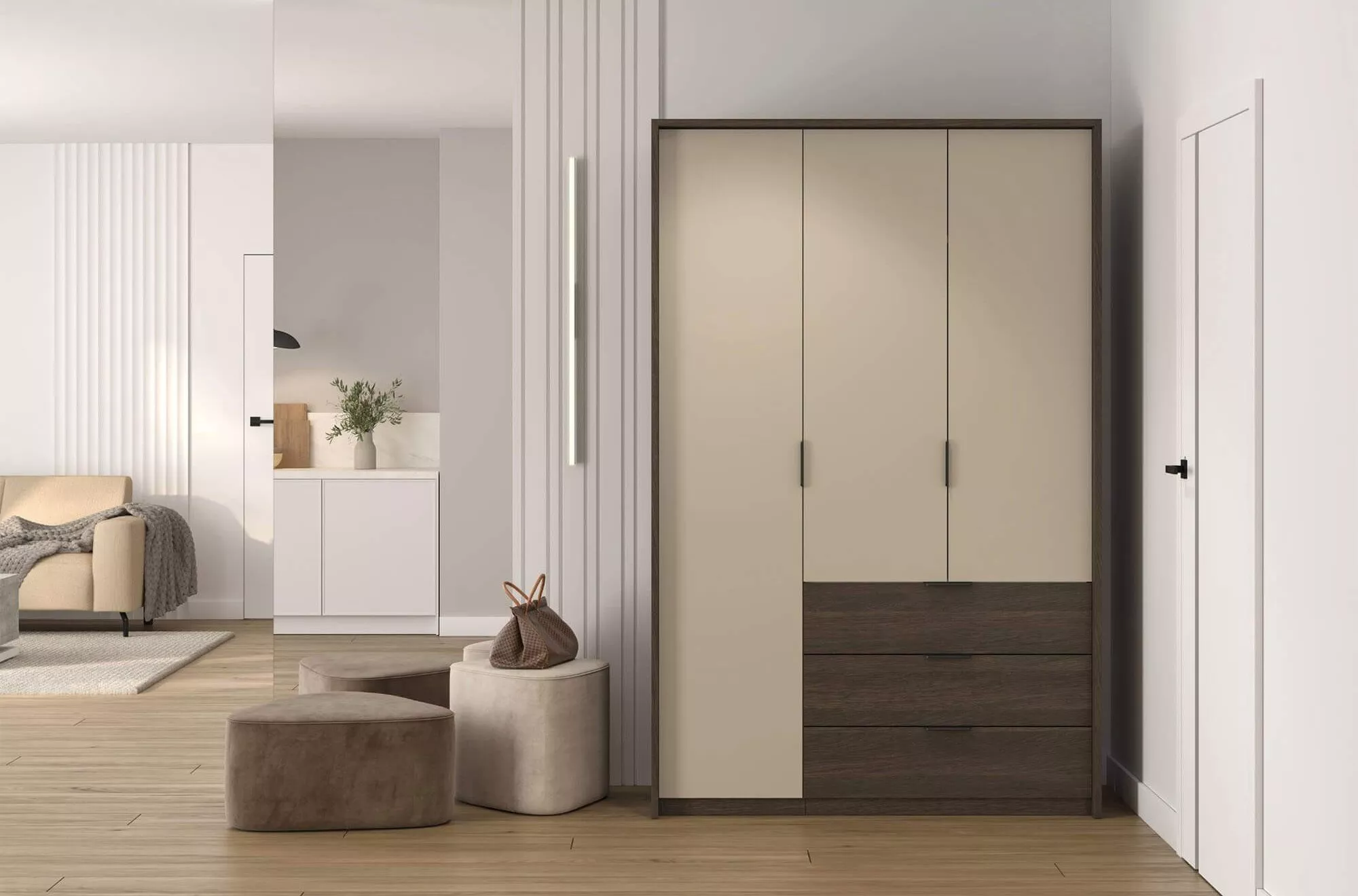 Šatní skříň 140 cm DEMETRA se vyznačuje nejen moderním designem, ale také pevnou konstrukcí. Skříň disponuje 3 prostornými šuplíky, 5 policemi a šatní tyčí k zavěšení ramínek. Je vyrobená z pevných a odolných materiálů, díky čemuž vám bude sloužit mnoho let.