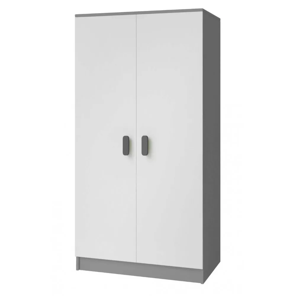 VÝPRODEJ - Dvoudveřová šedobílá šatní skříň do dětského pokoje SVEN 2, úchytky - šířka 80 cm, šedá