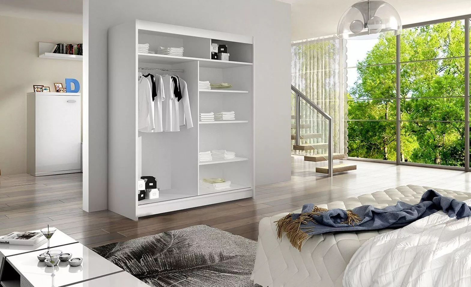Hledáte vhodnou skříň ložnice nebo obývacího pokoje? Zvažte nákup skříně Channa. Šatní skříň je vyrobena z vysoce kvalitních součástí, které zaručují její stabilitu a pevnost. Interiér skříně je rozdělen do praktických zón. První zahrnuje řadu prostorných polic a druhá poskytuje tyč pro ramínka.