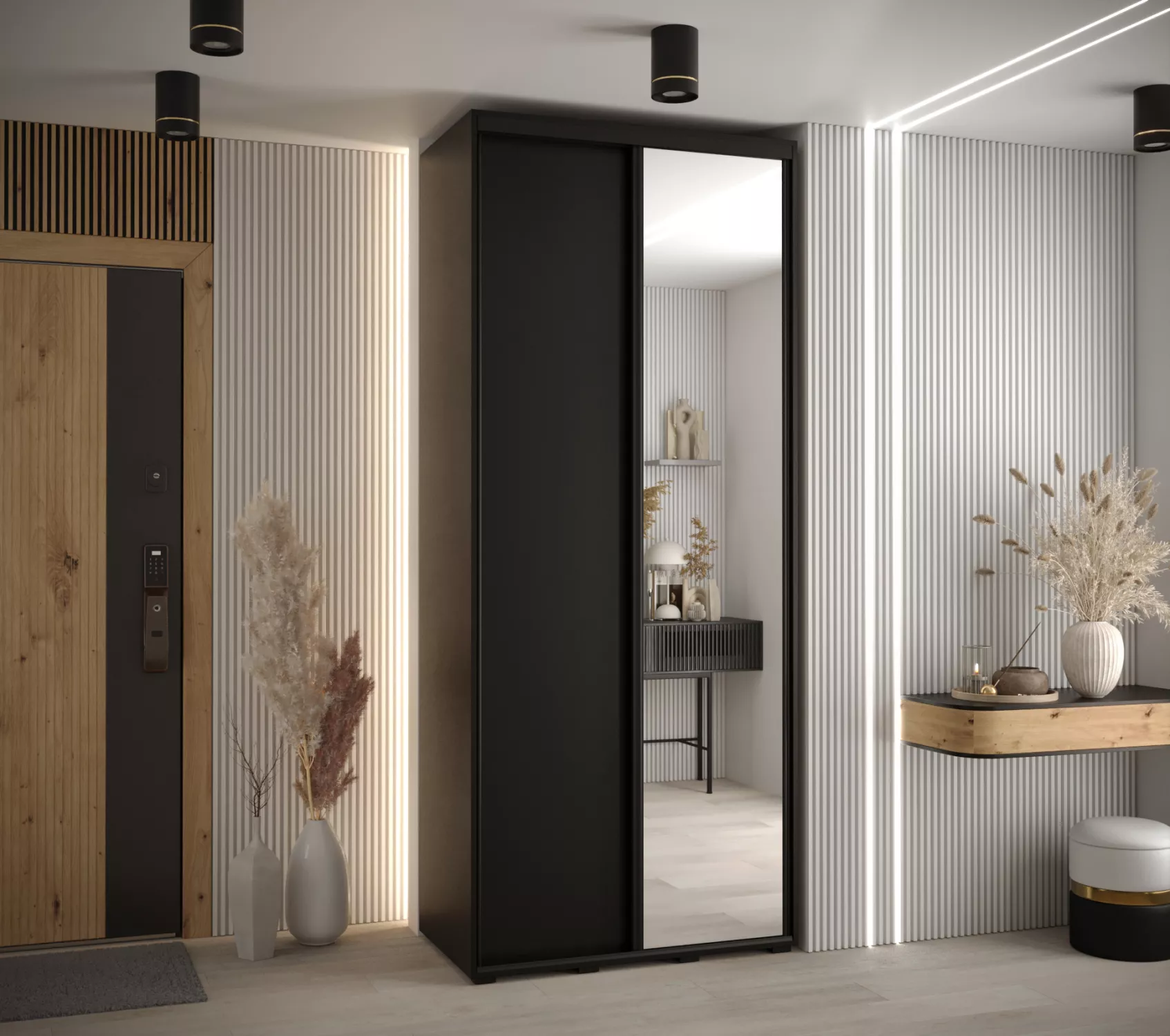VÝPRODEJ - Šatní skříň ASIRI 3 - 110/45 cm, černá / černá