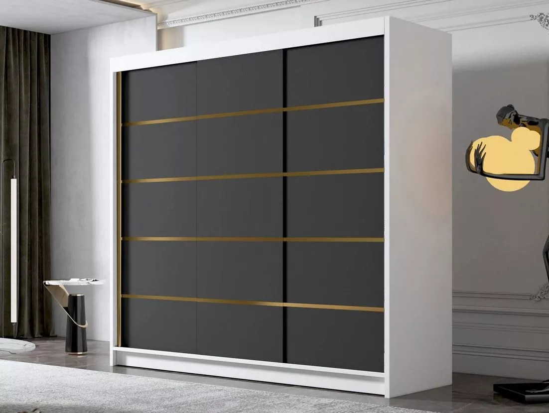 VÝPRODEJ - Šatní skříň 200 cm s posuvnými dveřmi TIOGA - bílá / černá