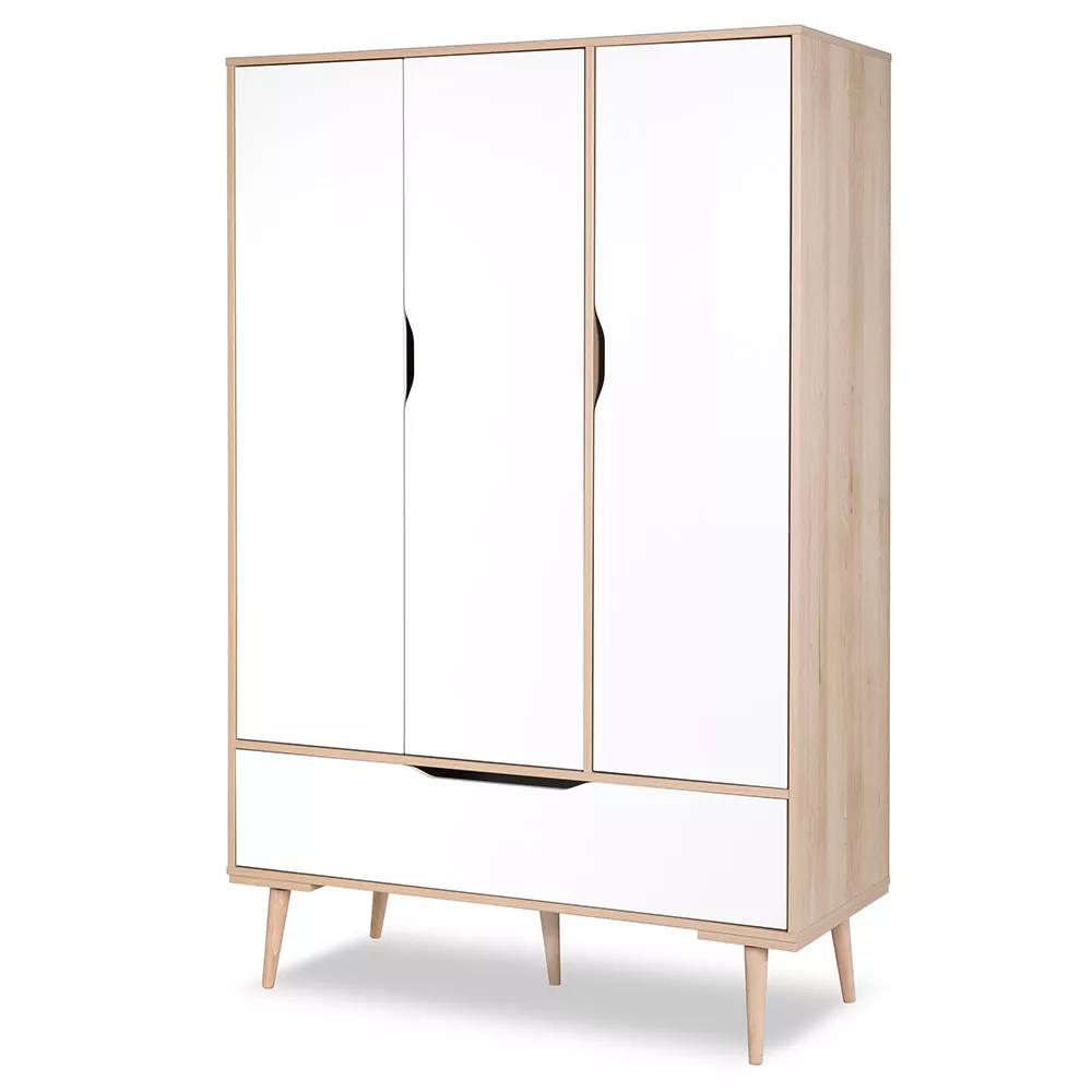 VÝPRODEJ - Prostorná šatní skříň 100 BRELA - buk / bílá