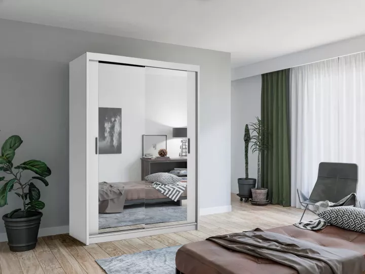VÝPRODEJ - Zrcadlová šatní skříň 150/62 KAILAN - bílá