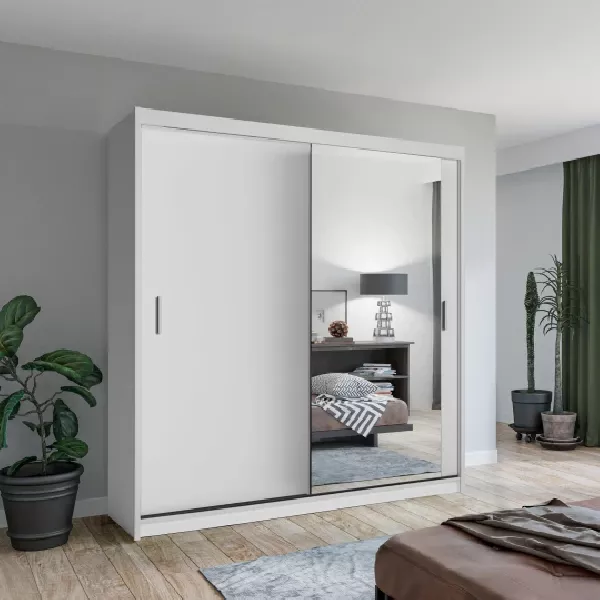 VÝPRODEJ - Šatní skříň se zrcadlem 203/62 KAILAN - bílá matná