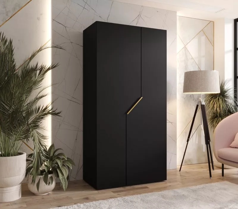 Úzká šatní skříň 100 cm ELIRA 1 - černá / zlatý úchyt