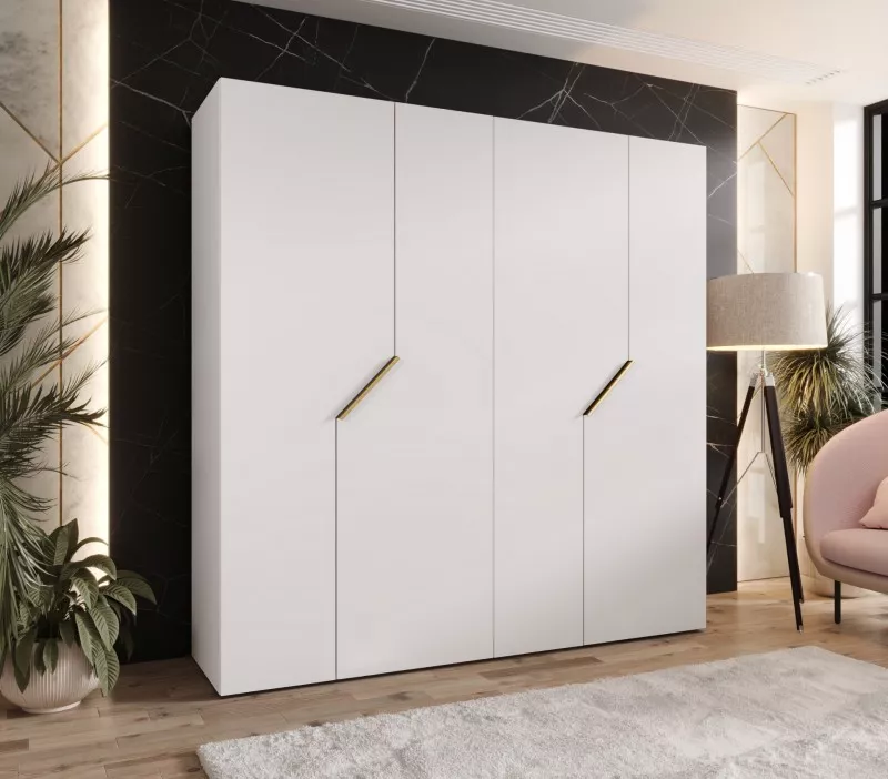 Čtyřdveřová šatní skříň 200 cm ELIRA 1 - bílá / zlaté úchyty