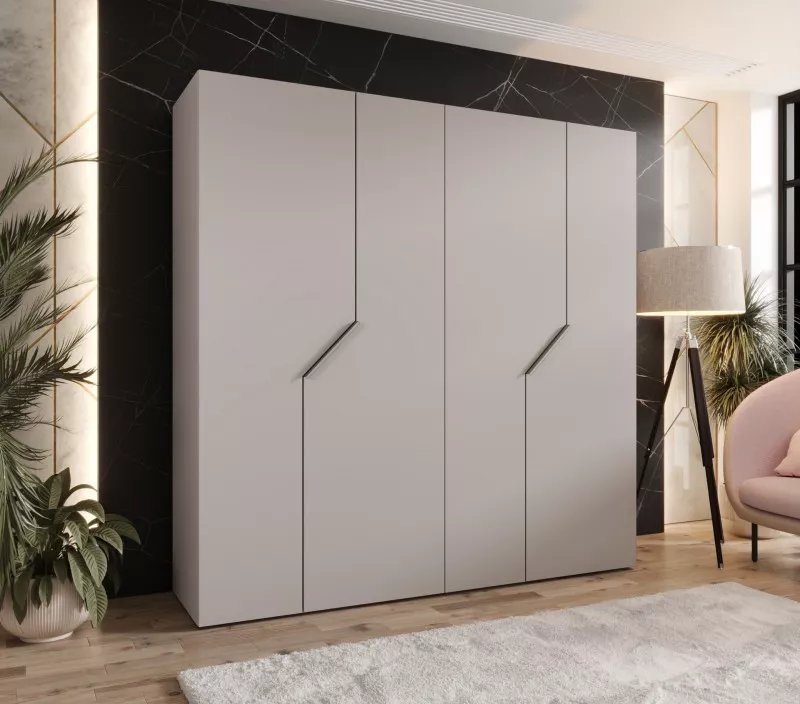 Čtyřdveřová šatní skříň 200 cm ELIRA 1 - kašmír / kašmírové úchyty
