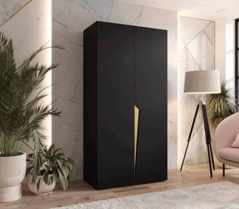 Šatní skříň 100 cm SORAYA 1 - černá / zlatý úchyt