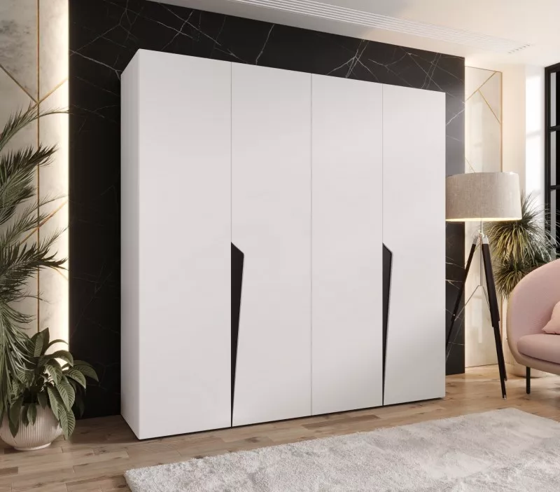 Čtyřdveřová šatní skříň 200 cm SORAYA 1 - bílá / černé úchyty