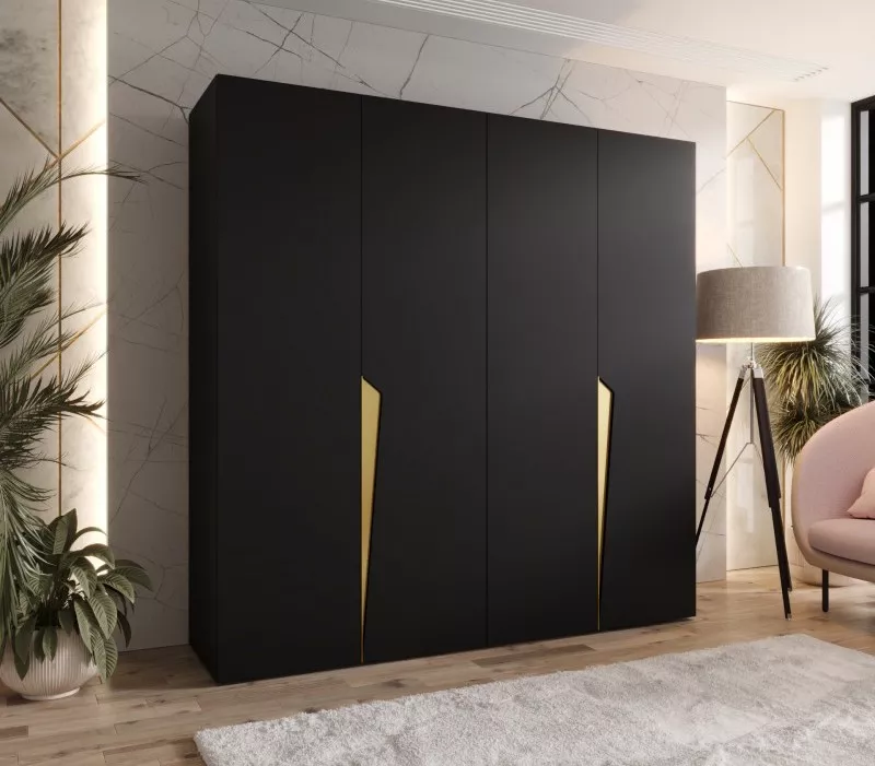 Čtyřdveřová šatní skříň 200 cm SORAYA 1 - černá / zlaté úchyty
