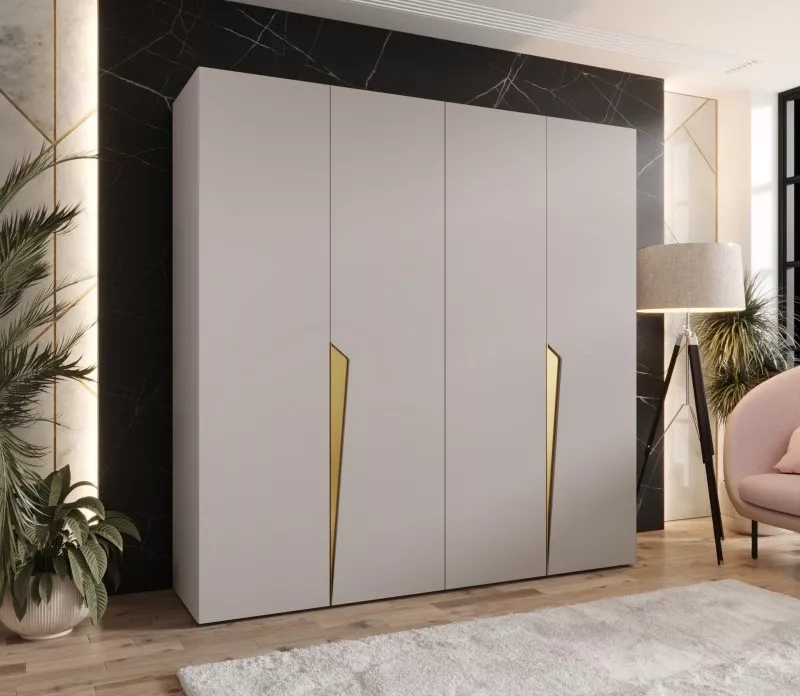 Čtyřdveřová šatní skříň 200 cm SORAYA 1 - kašmír / zlaté úchyty