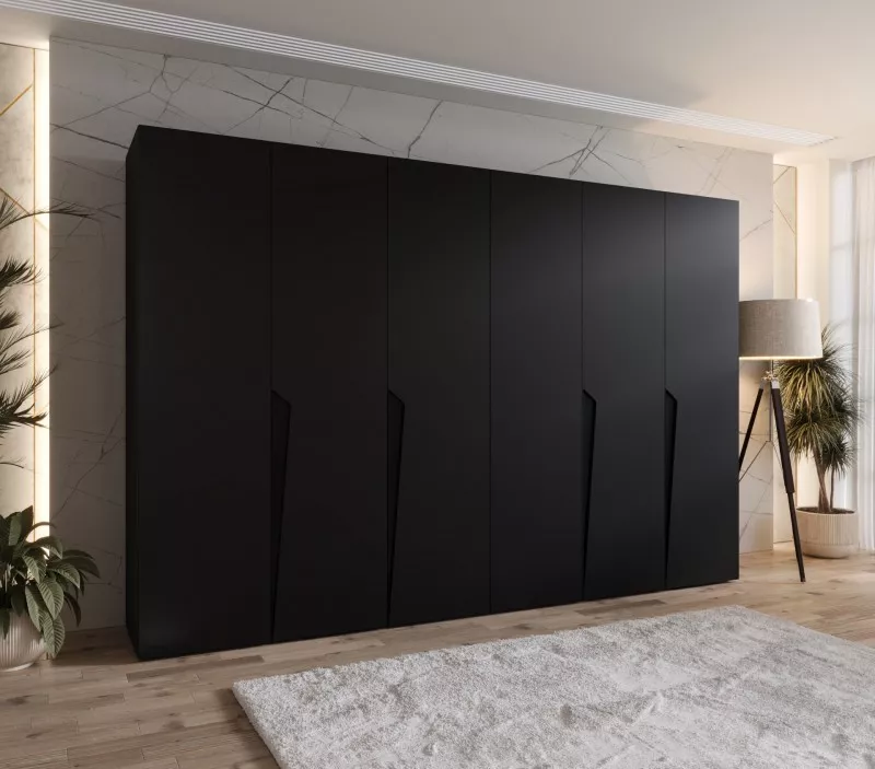 Šestidveřová šatní skříň 300 cm SORAYA 1 - černá / černé úchyty