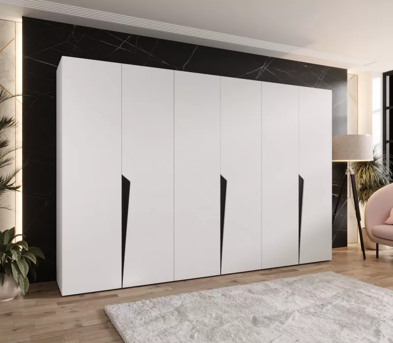 Velká šatní skříň 300 cm SORAYA 1 - bílá / černé úchyty