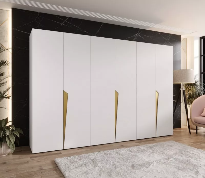Velká šatní skříň 300 cm SORAYA 1 - bílá / zlaté úchyty