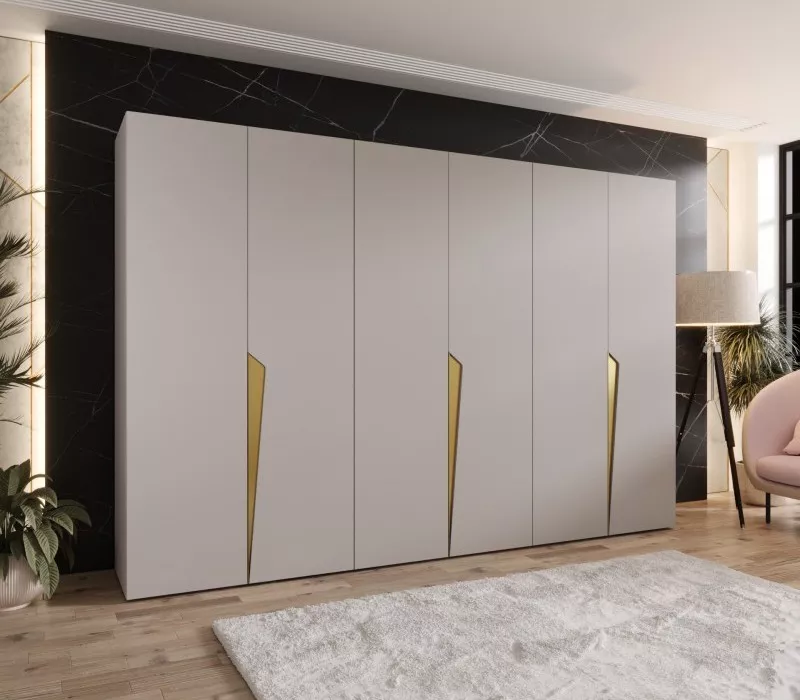 Velká šatní skříň 300 cm SORAYA 1 - kašmír / zlaté úchyty