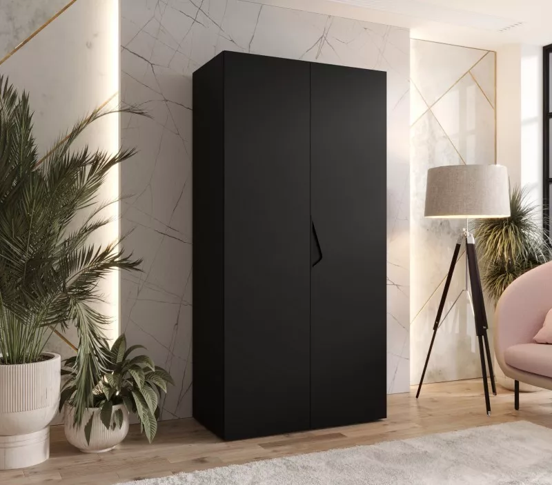 Úzká šatní skříň 100 cm AMARIS 1 - černá / černý úchyt