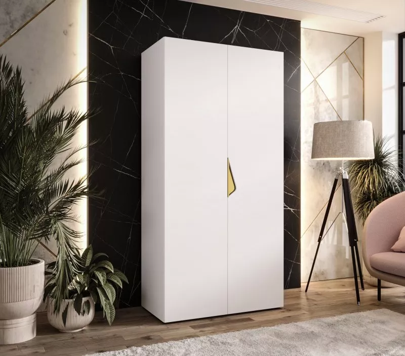 Úzká šatní skříň 100 cm AMARIS 1 - bílá / zlatý úchyt