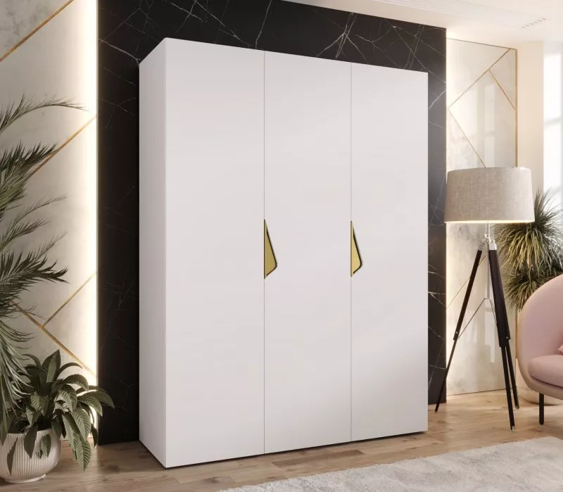 Třídveřová šatní skříň 150 cm AMARIS 1 - bílá / zlaté úchyty