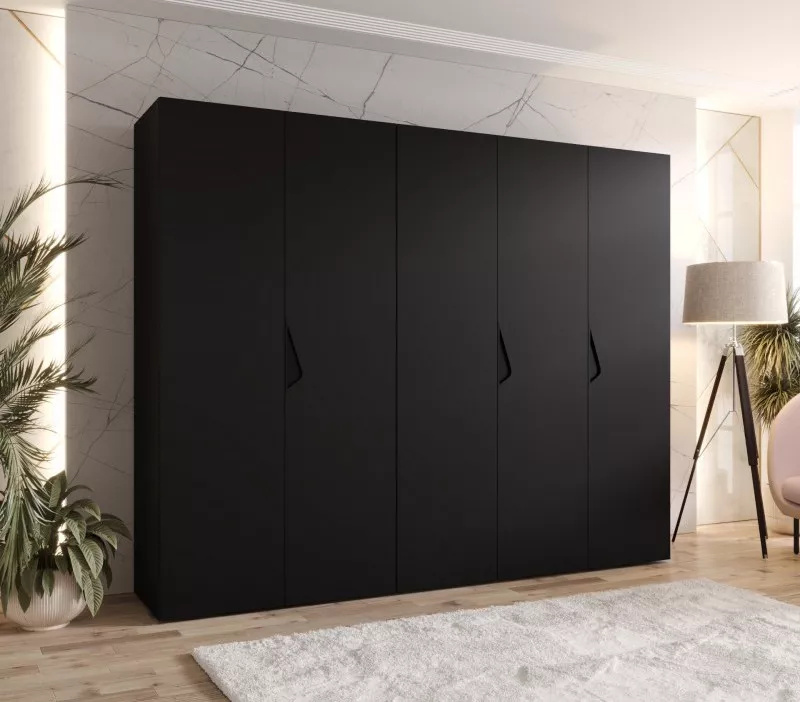 Široká šatní skříň 250 cm AMARIS 1 - černá / černé úchyty
