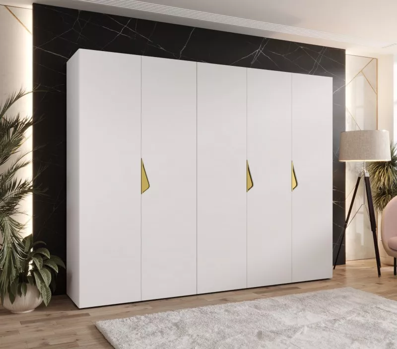 Široká šatní skříň 250 cm AMARIS 1 - bílá / zlaté úchyty