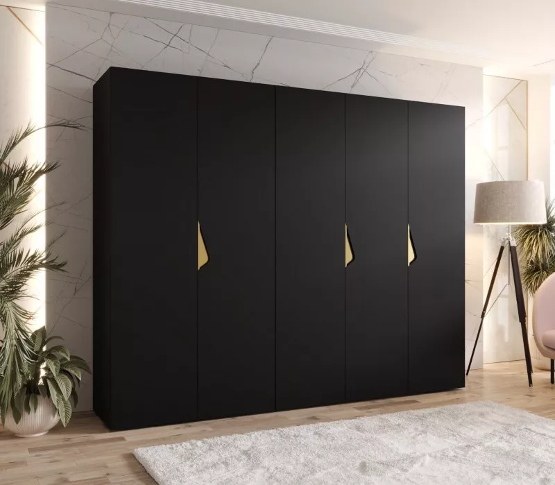 Široká šatní skříň 250 cm AMARIS 1 - černá / zlaté úchyty
