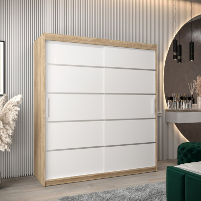 Šatní skříň ENNI - šířka 180 cm, dub sonoma / bílá