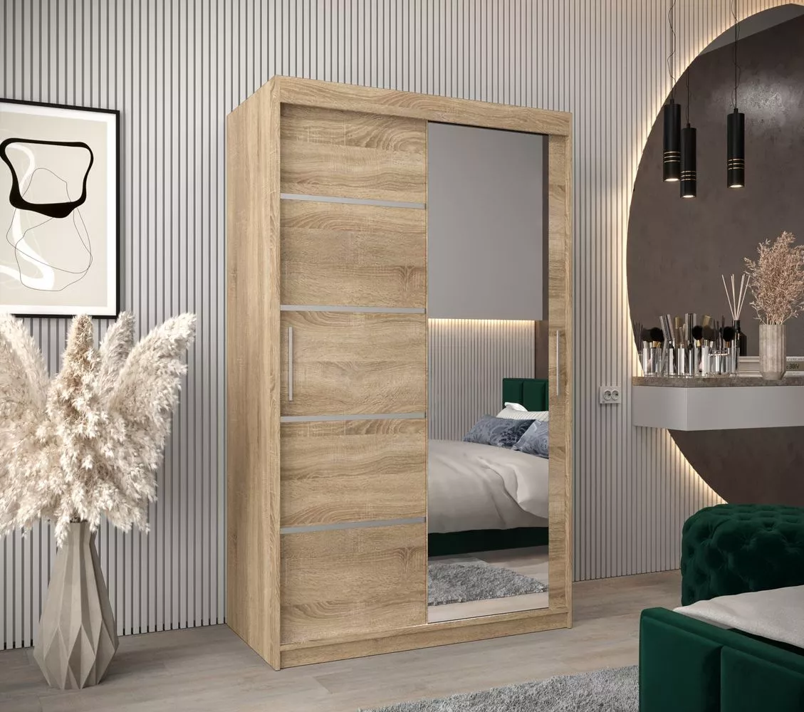 Šatní zrcadlová skříň ADELA - 120 cm, dub sonoma