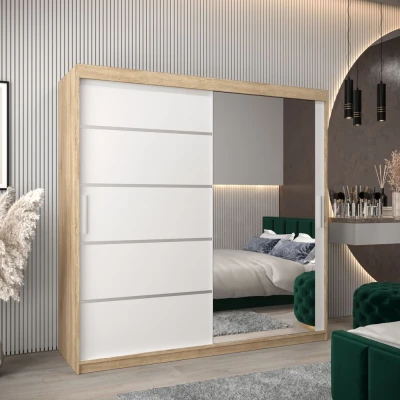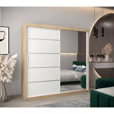 Šatní zrcadlová skříň ADELA - 200 cm, dub sonoma / bílá