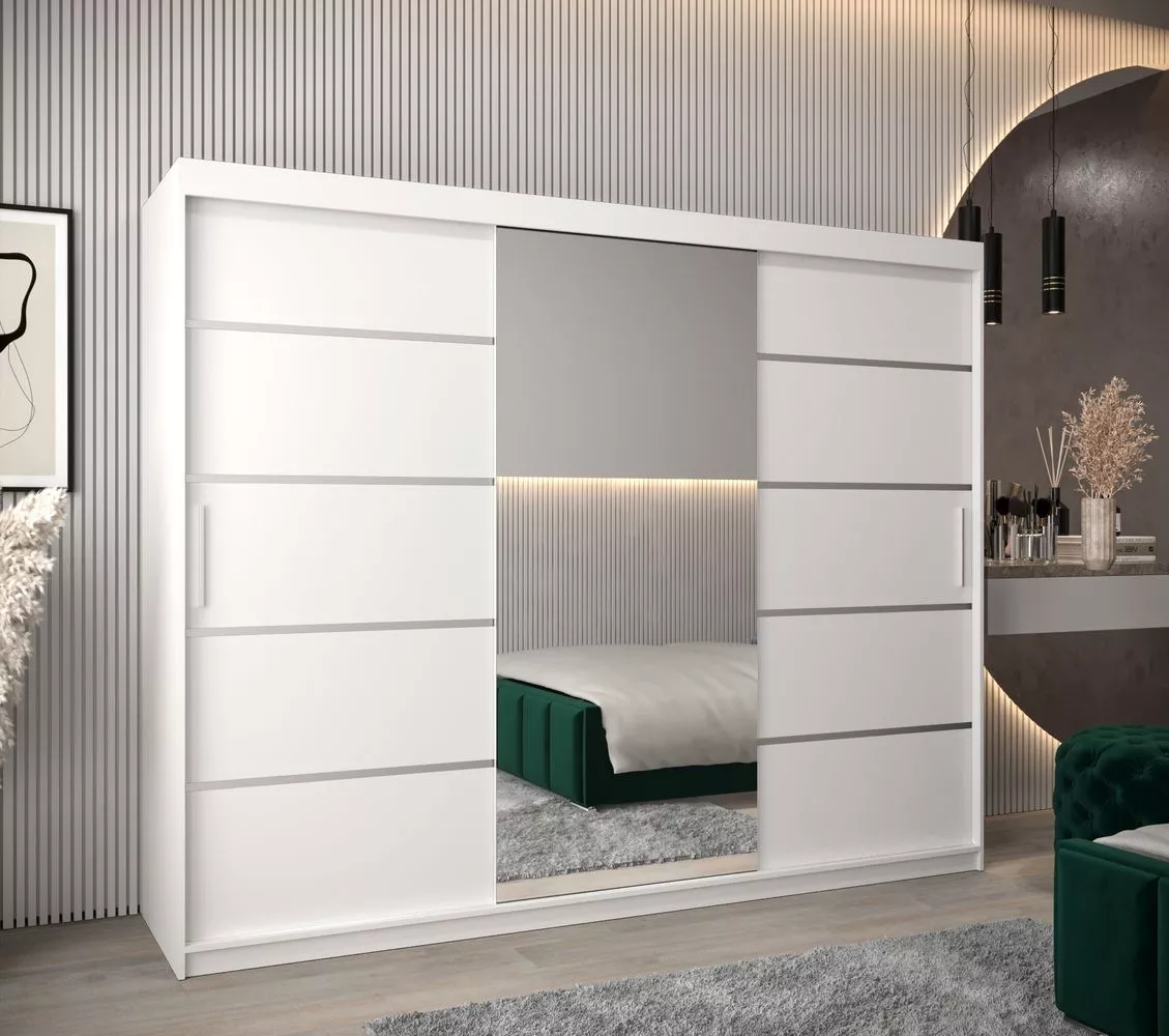 Šatní zrcadlová skříň ADELA - 250 cm, bílá