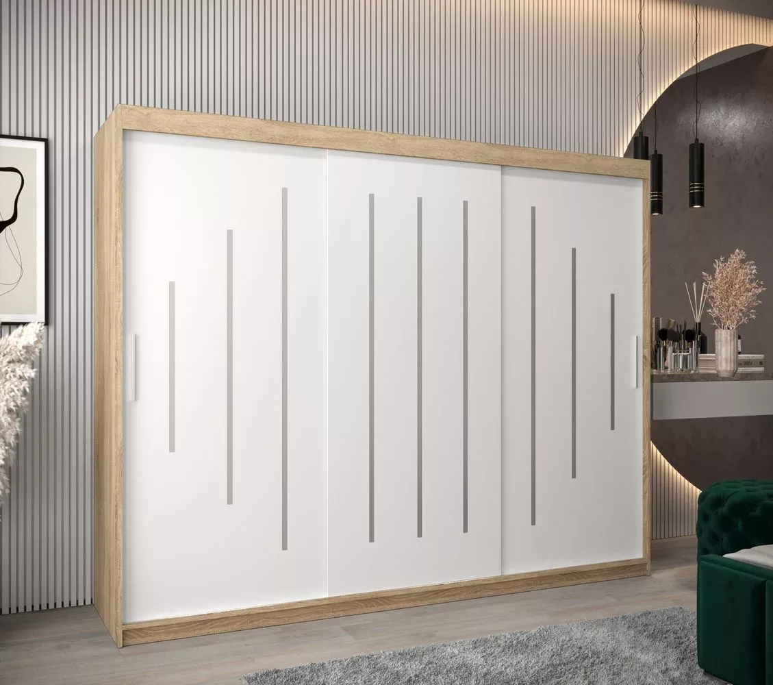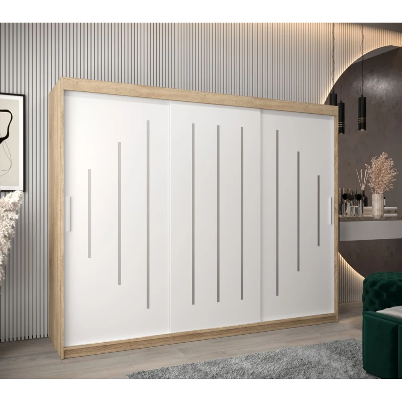 Šatní skříň ESTER - šířka 250 cm, dub sonoma / bílá