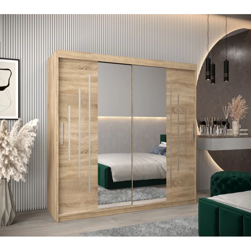 Šatní skříň se zrcadlem SOFIA - šířka 200 cm, dub sonoma