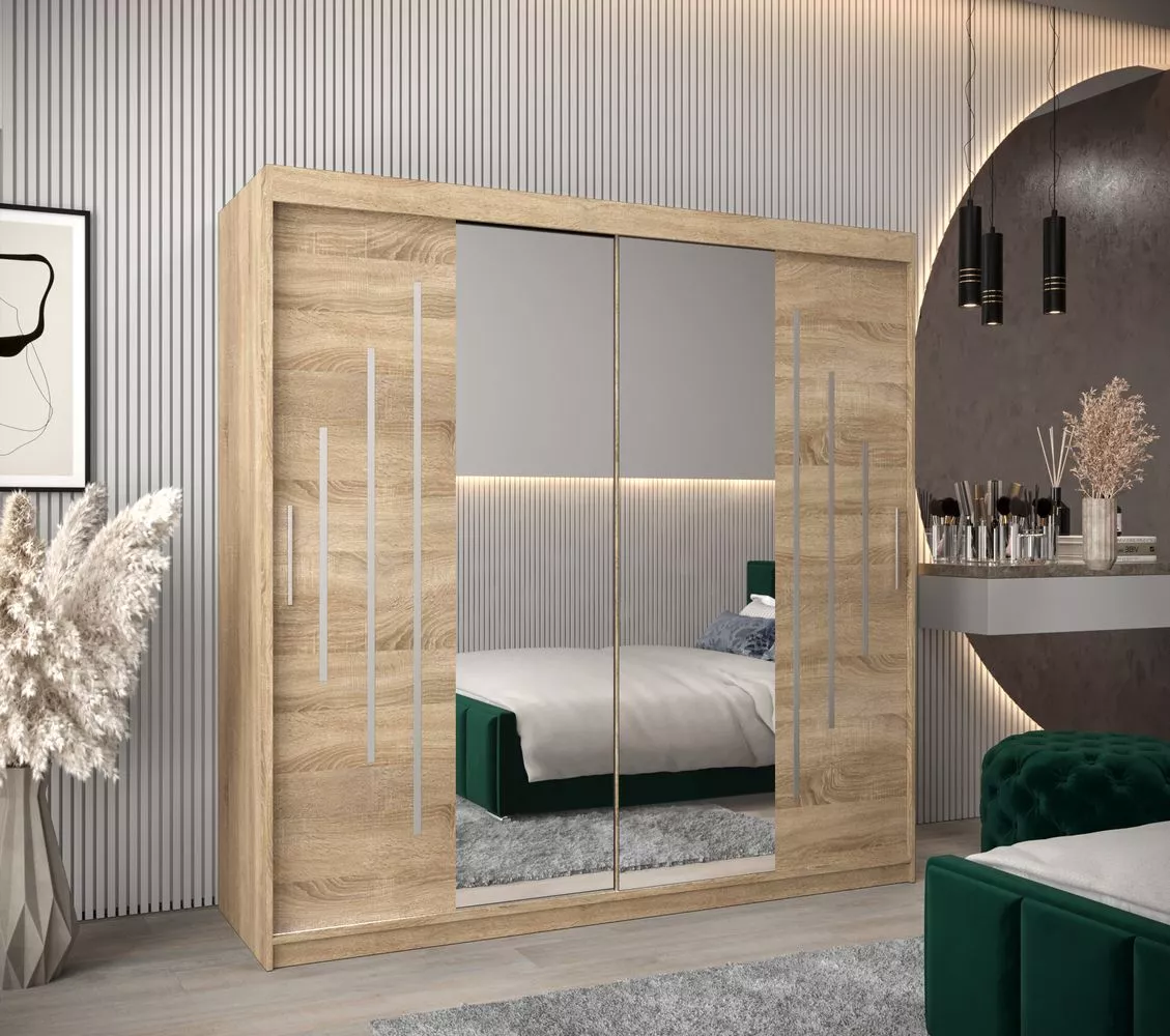 Skříň Sofia v moderním stylu se hodí do jakéhokoliv interiéru. Díky jednoduchému vzhledu bude vaše domácnost působit vzdušně a prosvětleně. Díky posuvným dveřím je skříň vhodná i pro menší místností. Skříň je vyrobena z LTD dřevěného materiálu, který je nenáročný na údržbu. Povrchová úprava je matná a přední část je doplněna praktickým zrcadlem.