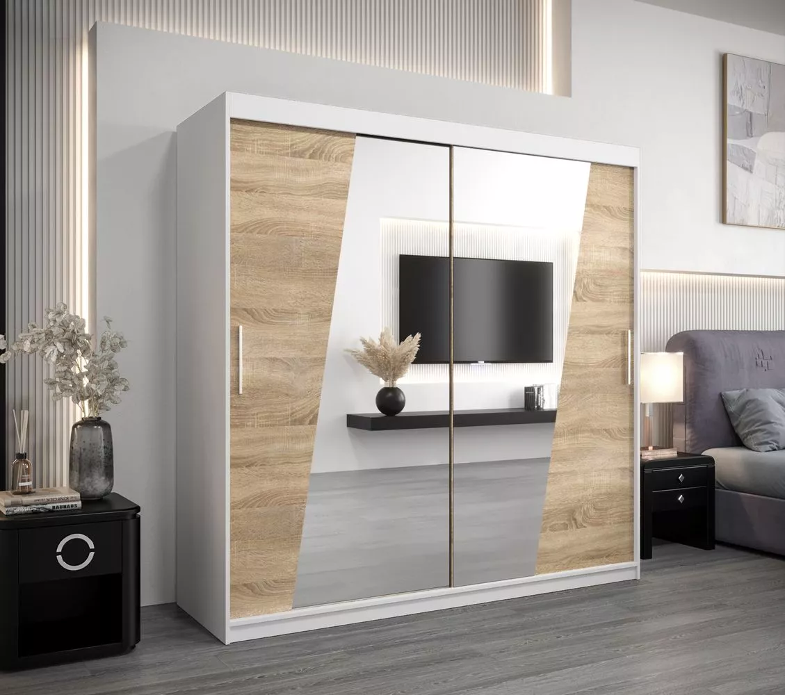 Skříň ESTER v moderním stylu se hodí do jakéhokoliv interiéru. Díky jednoduchému vzhledu bude vaše domácnost působit vzdušně a prosvětleně. Díky posuvným dveřím je skříň vhodná i pro menší místností. Skříň je vyrobena z LTD dřevěného materiálu, který je nenáročný na údržbu. Povrchová úprava je matná a přední část je doplněna praktickým zrcadlem.