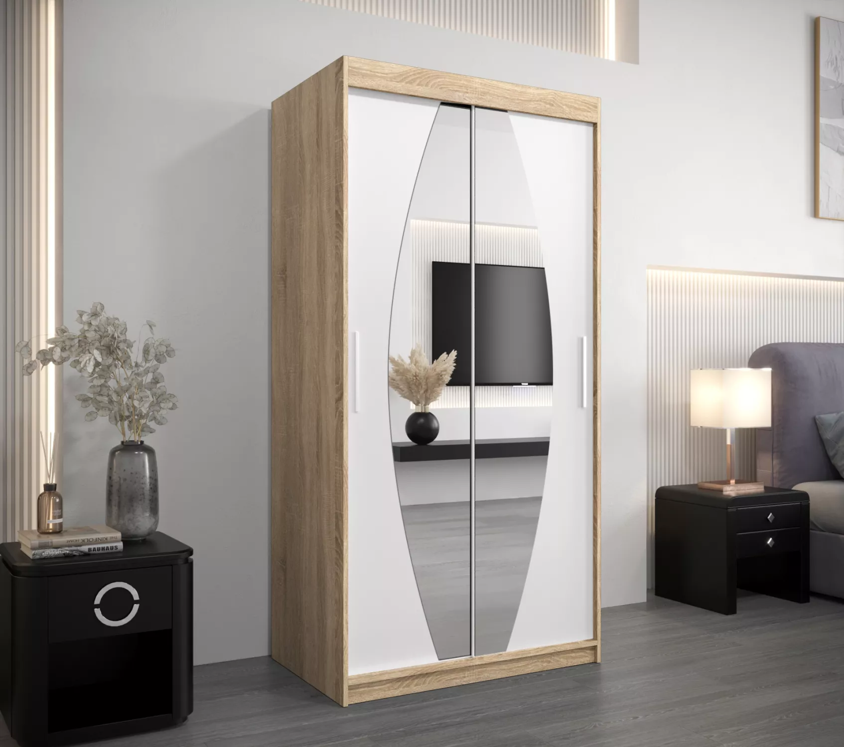 Šatní skříň se zrcadly TAMARA - šířka 100 cm, dub sonoma / bílá