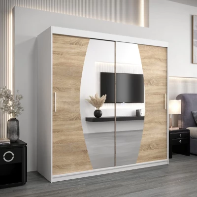 Šatní skříň LILIANA - šířka 200 cm, bílá / dub sonoma