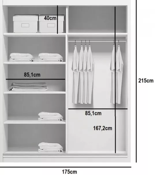 Nadčasová šatní skříň v šířce 175 cm skvěle doplní váš interiér. Kvalitní zpracování LTD potěší i náročné uživatele, praktické posuvné dveře oceníte v boji s nedostatkem místa. Nabídka se vyznačuje nejen moderním designem, ale také stabilní strukturou. Uvnitř skříně jsou police a šatní tyč.