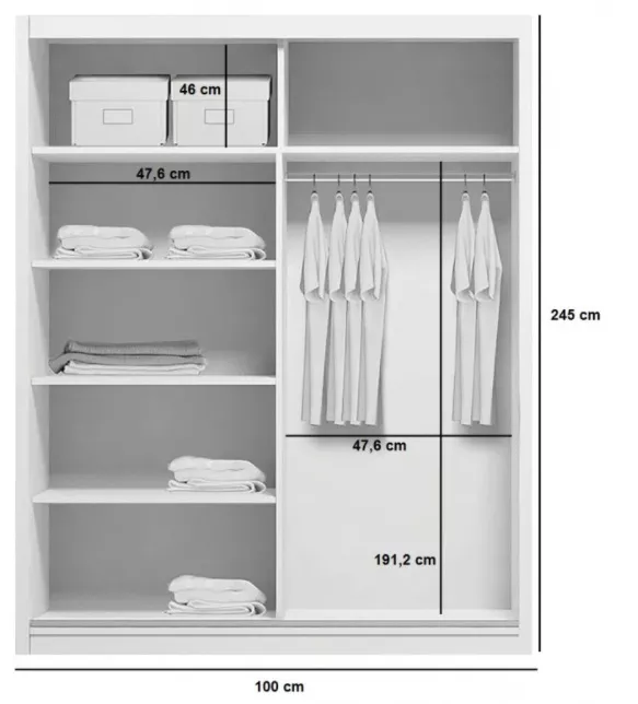 Šatní skříň Jacobo představuje kvalitní doplněk do moderní ložnice či předsíně. Kromě jedinečného designu nabízí spoustu místa pro uložení oblečení. Skříň disponuje posuvnými dveřmi na kvalitních hliníkových vodících lištách, otevírání dveří je tak hladké a plynulé. Skříň nemá žádné výrazné úchytky, dveře se otevírají pomocí lišt po stranách. Uvnitř skříně jsou police a šatní tyč.