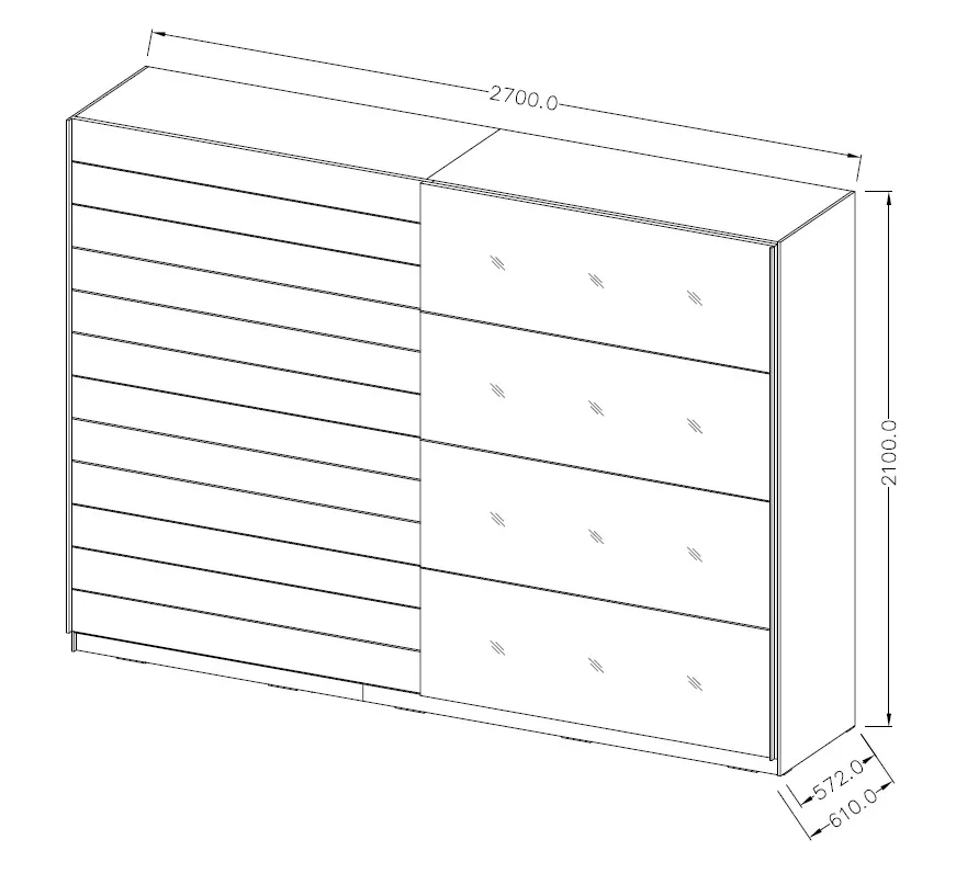 Velká skříň SÁRA s černým sklem 270 cm, dub Monastery