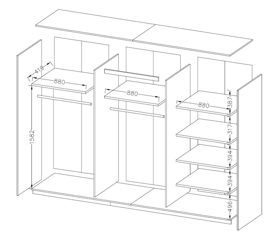 Skříň Sára zaujme svým moderním charakterem. Lesklá černá přední část tvoří originální atmosféru dané kompozice. Model je vybavený policemi a dvěma šatními tyčemi, které umožní třídit větší množství oblečení. Nábytek ve spojení s ostatními prvky kolekce tvoří komplet, který okouzlí dokonce i nejnáročnější zákazníky. Solidní provedení na základě nábytkové desky odolné vůči poškození, zaručuje dlouholetý komfort používání.