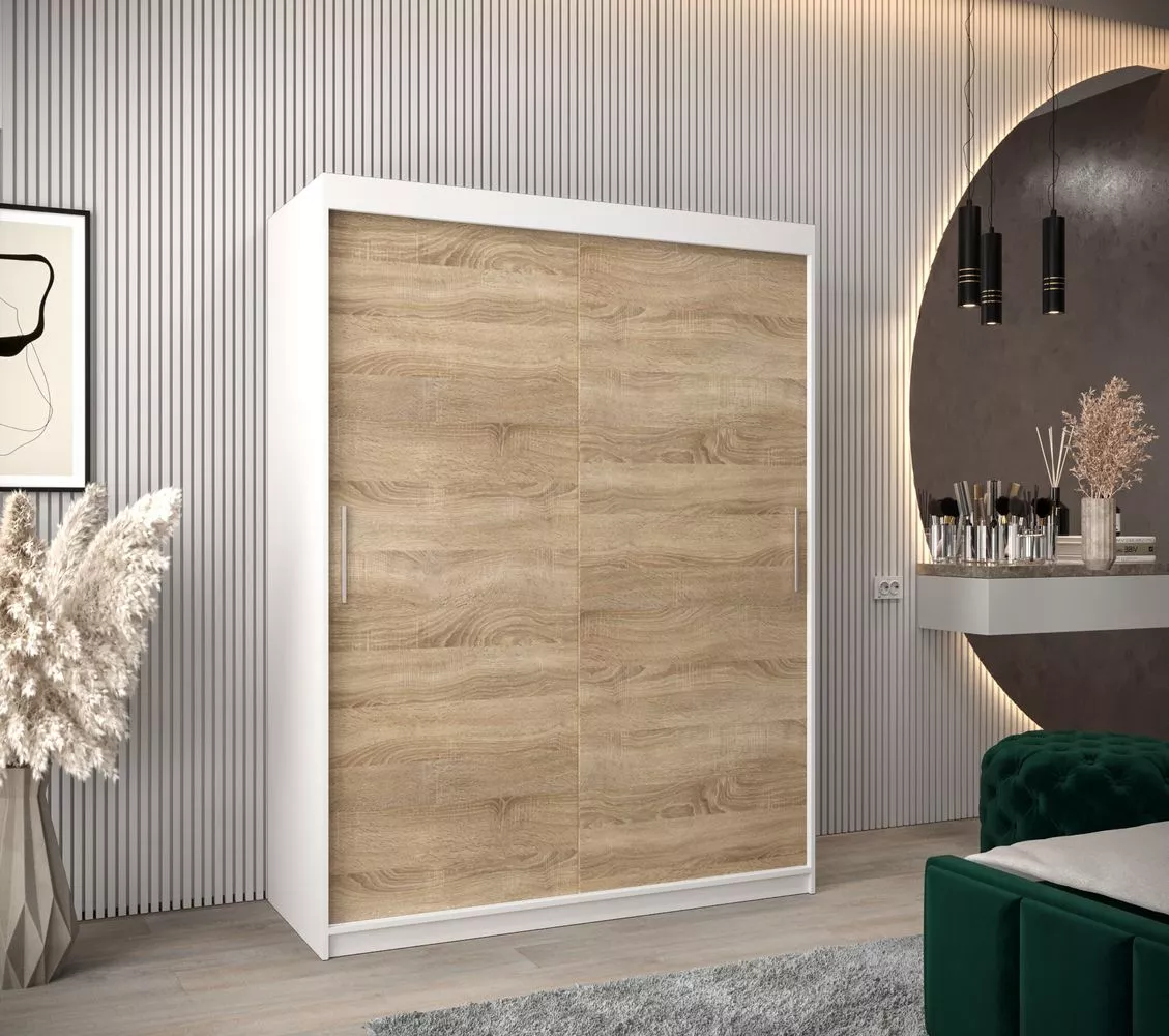 Skříň s posuvnými dveřmi v šířce 150 cm TIMEA - bílá / dub sonoma
